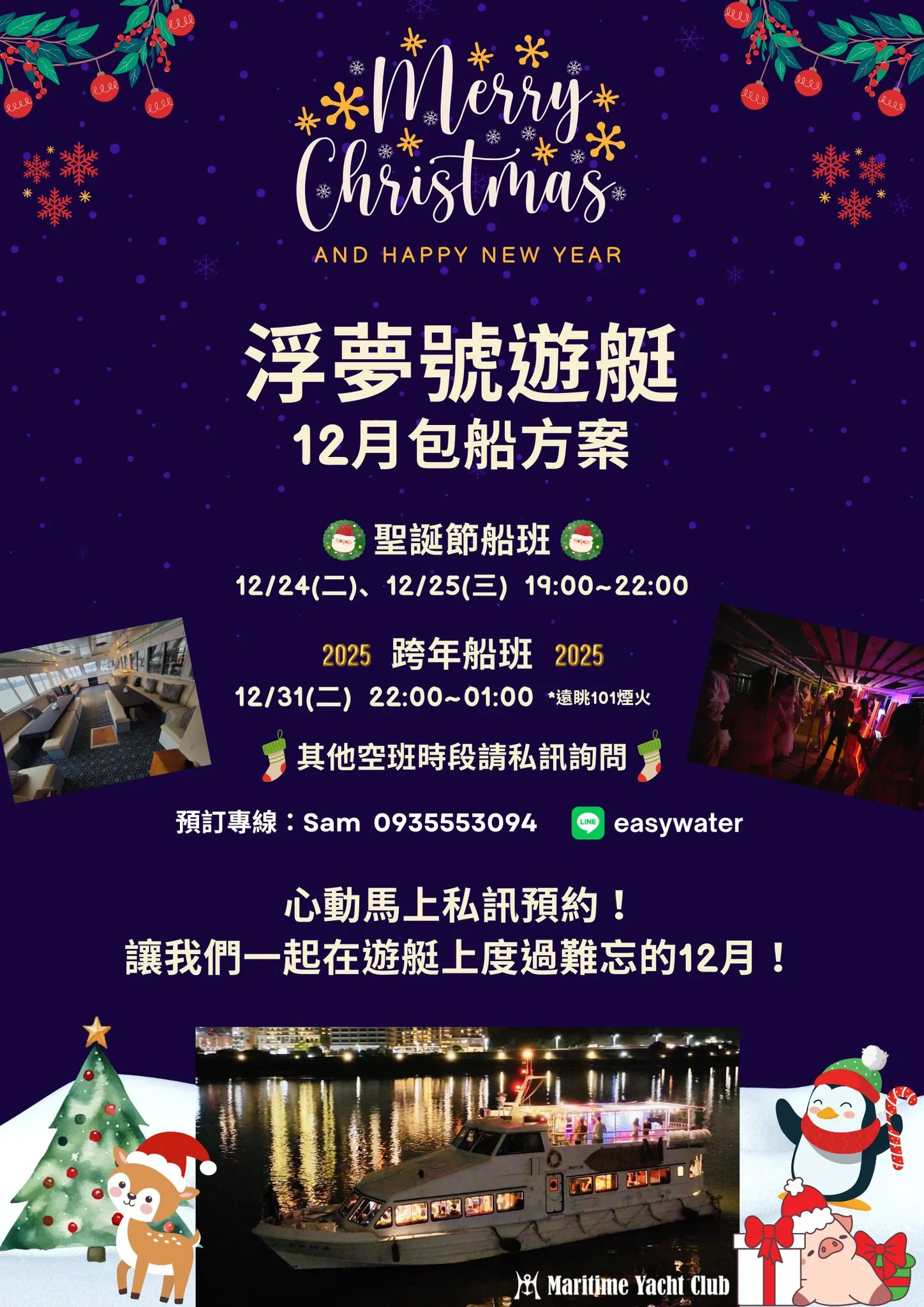 不論是聖誕節、跨年或是尾牙、春酒,浮夢號遊艇將能幫你創造一段特別的回憶!🥰